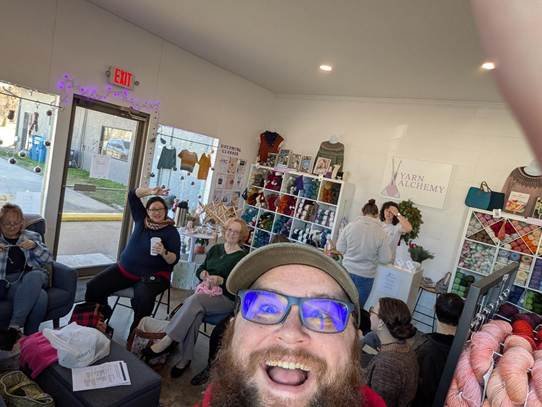 And here you see the scamp that took the pictures. Steven loves his selfies! He is also an accomplished knitter and spinner. His “dad” jokes are the absolute WORST! But he is a delightful young fella whom I love to tease, mostly about his scraggly beard.